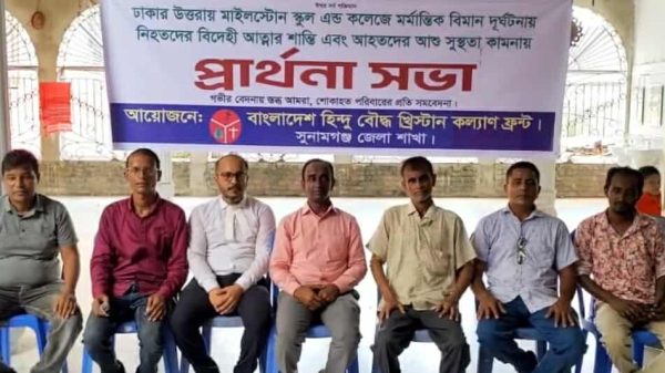 সুনামগঞ্জ প্রতিনিধি ঢাকার উত্তরায় মাইলস্টোন স্কুল এন্ড কলেজে বিমান বাহিনীর একটি প্রশিক্ষন বিমান র্দূঘটনায় অনেক কোমলমুতি শিক্ষার্থী,অভিভাবক ও শিক্ষক নিহত ও আহতের ঘটনায় সুনামগঞ্জে প্রার্থনা সভা অনুষ্ঠিত হয়েছে। বৃহস্পতিবার দুপুর