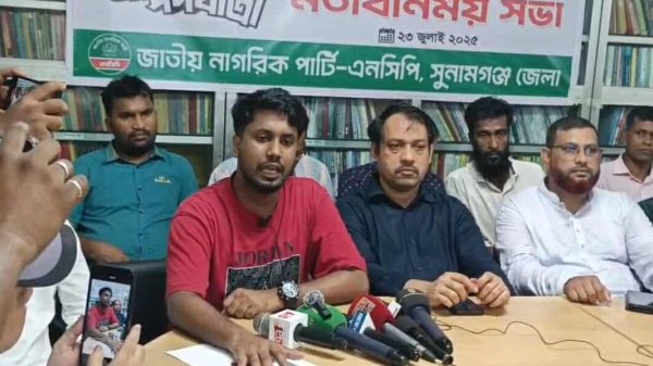 সুনামগঞ্জ প্রতিনিধি সারাদেশের মতো সুনামগঞ্জে ও আগামী শুক্রবার (২৫ জুলাই) জাতীয় নাগরিক পার্টি (এনসিপি)”র পদযাত্রাকে ঘিরে সংবাদ সম্মেলন অনুষ্ঠিত হয়েছে। আজ বুধবার দুপুর ১২টায় সুনামগঞ্জ জেলা এনসিপির উদ্যোগে শহরের শহীদ